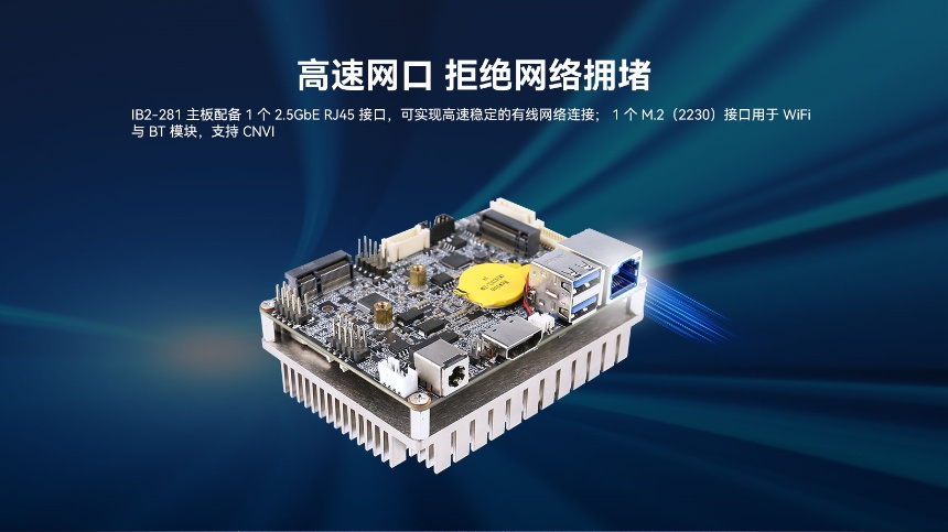 IB2-281接口豐富,配備2個USB3.2 Gen2接口,適配多種IoT設備連接需求,還有1個2.5GbE網口,即使在高峰時段,也能快速處理眾多客戶的購買需求,保證自助收銀的連續性和穩定性。1xM.2(2242)PCIe3.0x4接口可安裝高速SSD,提供卓越的數據存儲性能。