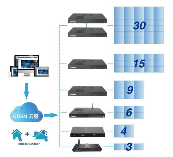 ● 支持從商用級到工業級,從2k分辨率到4K分辨率,從多屏拼接墻到單屏廣告牌,從外掛播放器到可插拔模塊等品類齊全的媒體控制器。