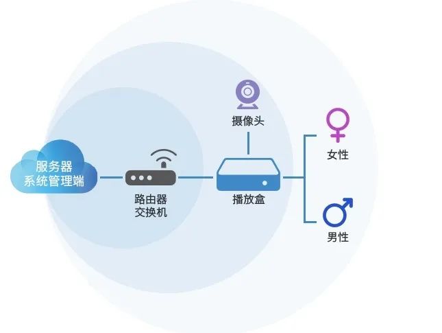 融合人工智能技術(shù),采用專業(yè)的人臉識(shí)別算法,通過終端接入攝像頭獲取識(shí)別人體畫像,并分析判斷其年齡、性別等屬性,實(shí)現(xiàn)自動(dòng)推送與客戶匹配度高的廣告內(nèi)容,針對(duì)新老客戶、不同會(huì)員等級(jí)客戶區(qū)別性播放廣告。