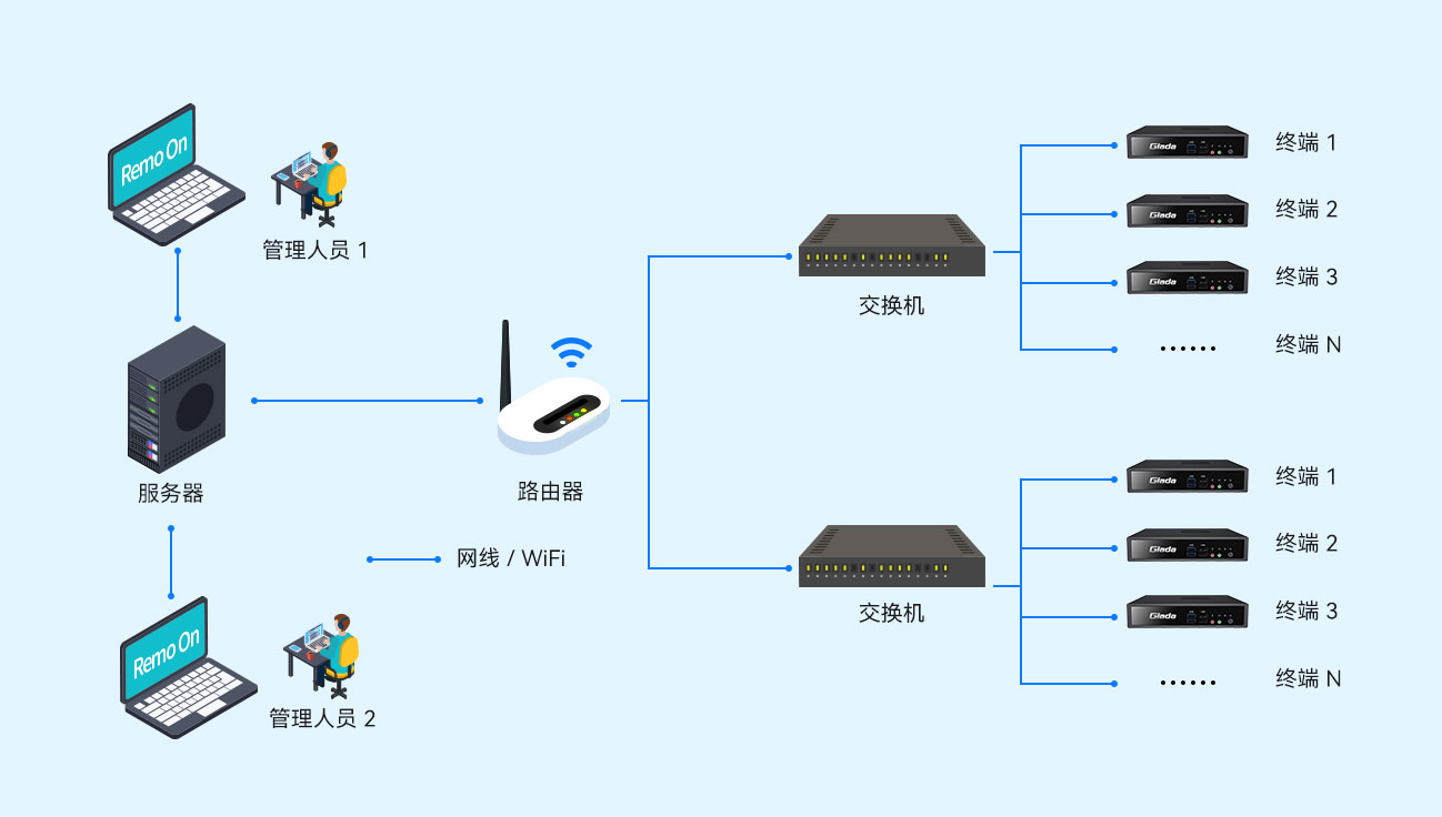 方案涵蓋云終端、邊緣存儲(chǔ)服務(wù)器、數(shù)字標(biāo)牌、OPS等智能硬件產(chǎn)品,以及Remo On智能遠(yuǎn)程監(jiān)管系統(tǒng)、GSM邊緣存儲(chǔ)管理系統(tǒng)等軟件,提供智能辦公硬軟件一體化服務(wù),提升員工的辦公體驗(yàn),實(shí)現(xiàn)可視化、數(shù)據(jù)化、信息化、智能化管理。