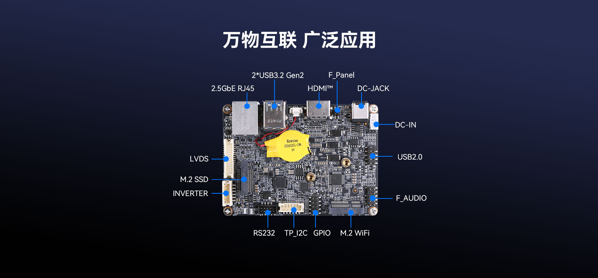 支持1x RJ45,1 x M.2(2230)for WiFi/BT(支持CNVI)