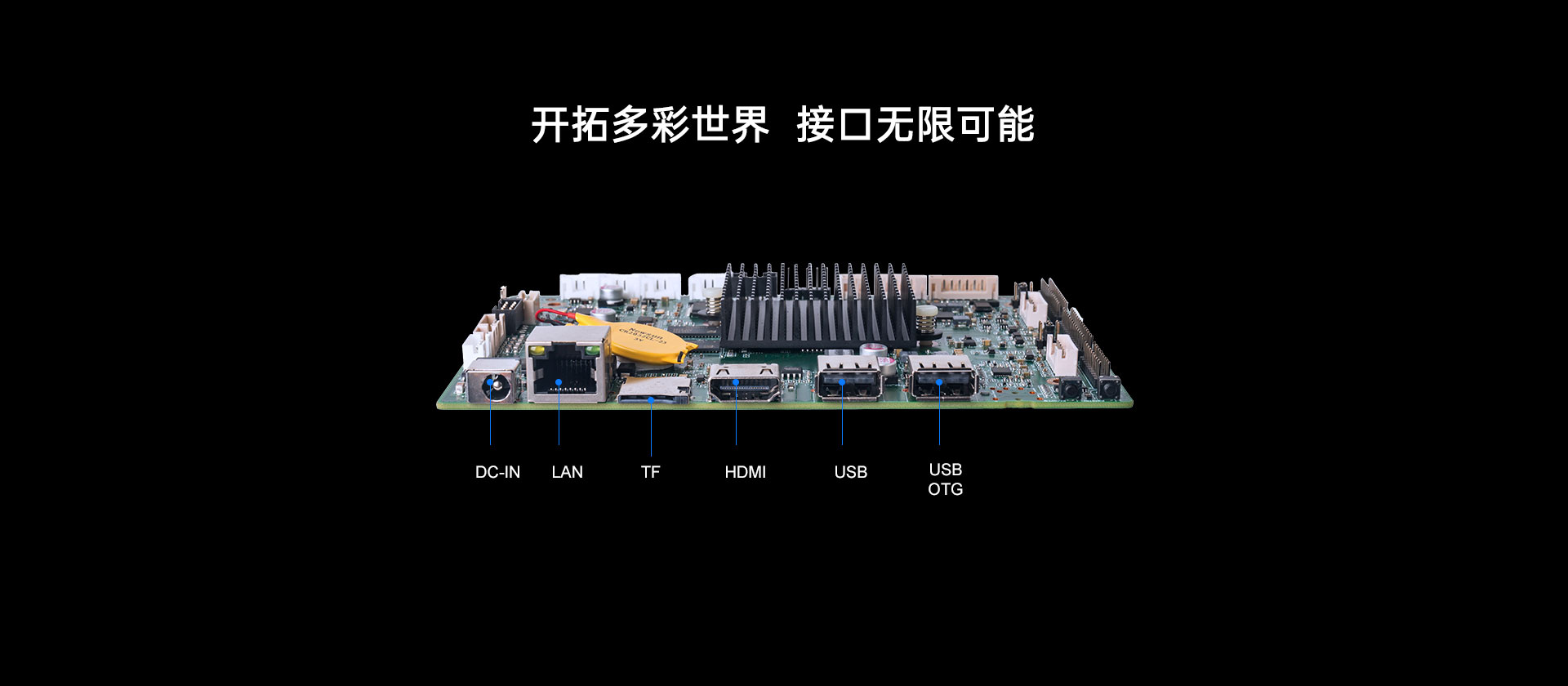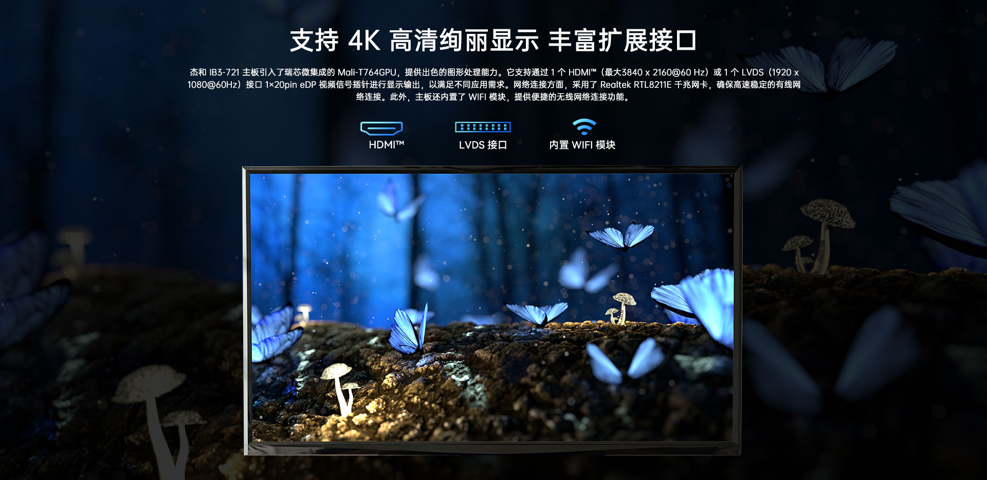 | 外部I/O | 接口 | 1 x HDMITM(Max.4096 x 2160 @60 Hz) 1 x LVDS(Max. 1920x1080@60Hz)(可選eDP/MIPI-DSI) 1 x USB2.0(OTG),1 x USB2.0 1 x RJ45 1 x TF卡槽 1 x 2-IN-1 Headset (AUDIO-OUT & MIC-IN) |